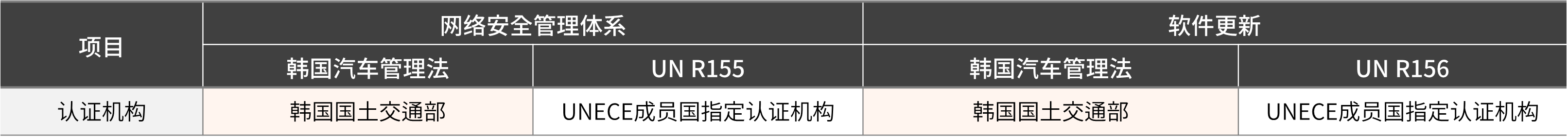 第一,系统认证包括CSMS认证和SUMS认证,但韩国法规仅要求汽车制造商及进口销售商获得CSMS认证。