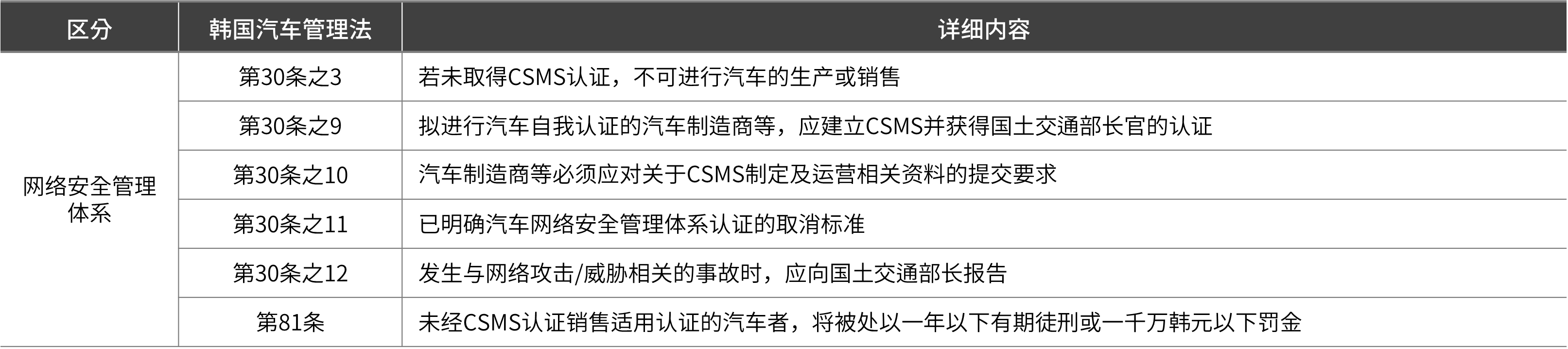 首先就修订后的《韩国汽车管理法》中关于CSMS的各项条款进行简要说明。
