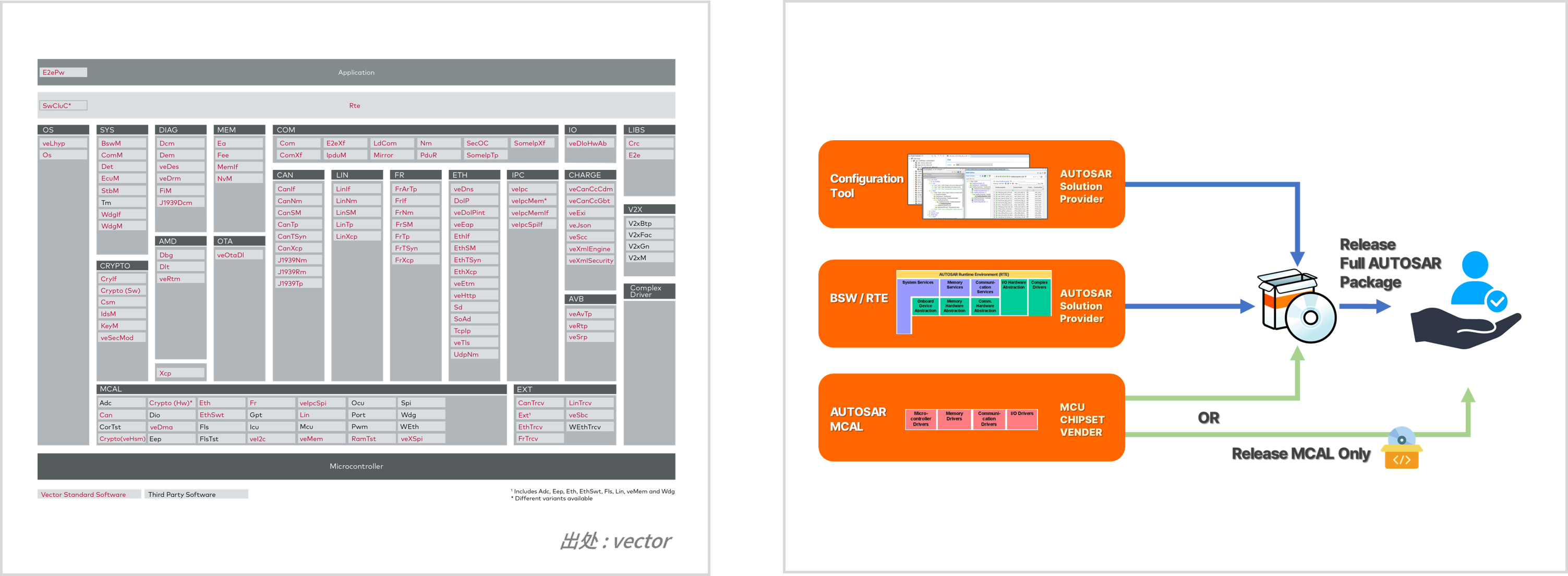 若购买AUTOSAR,通常Configuration Tool、BSW、RTE会从AUTOSAR解决方案供应商处获得,而AUTOSAR MCAL,有时直接从MCU供应商处获得,有时也会包含在AUTOSAR套件中一并提供。